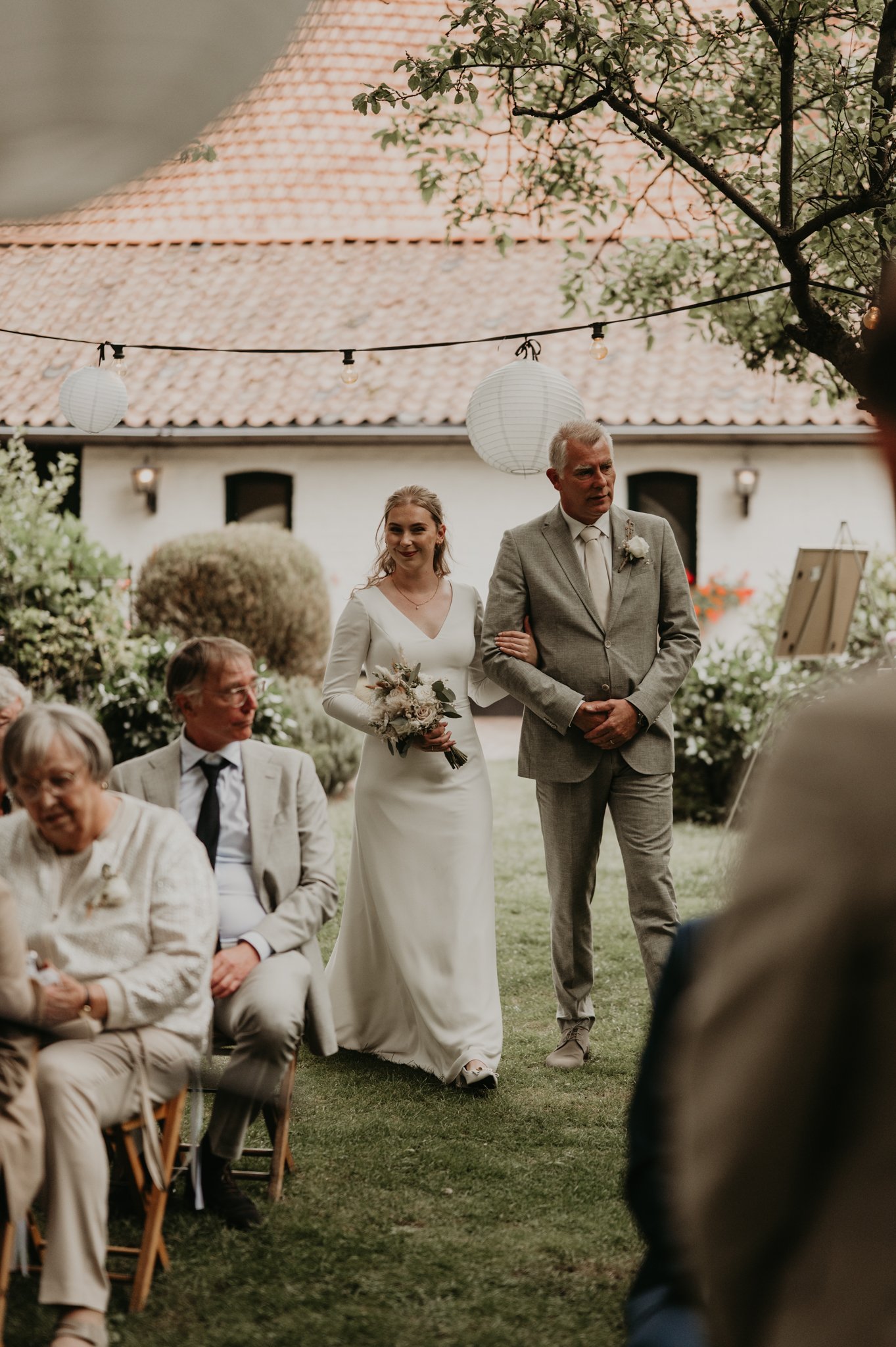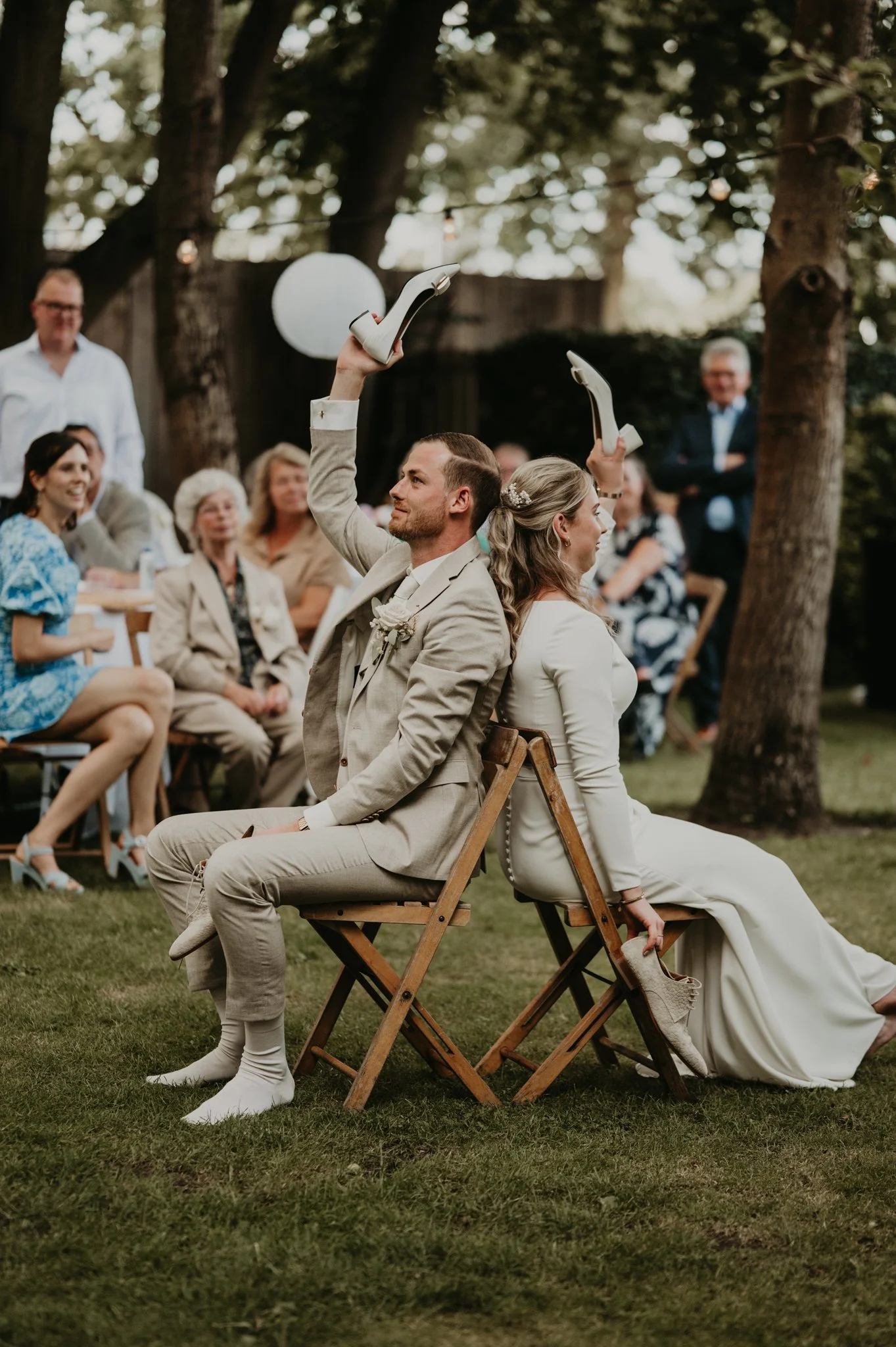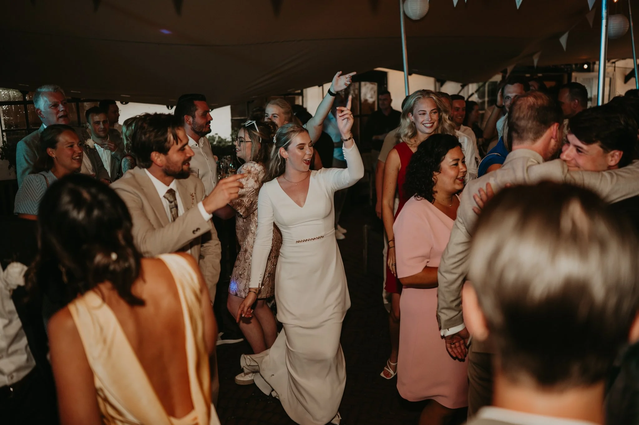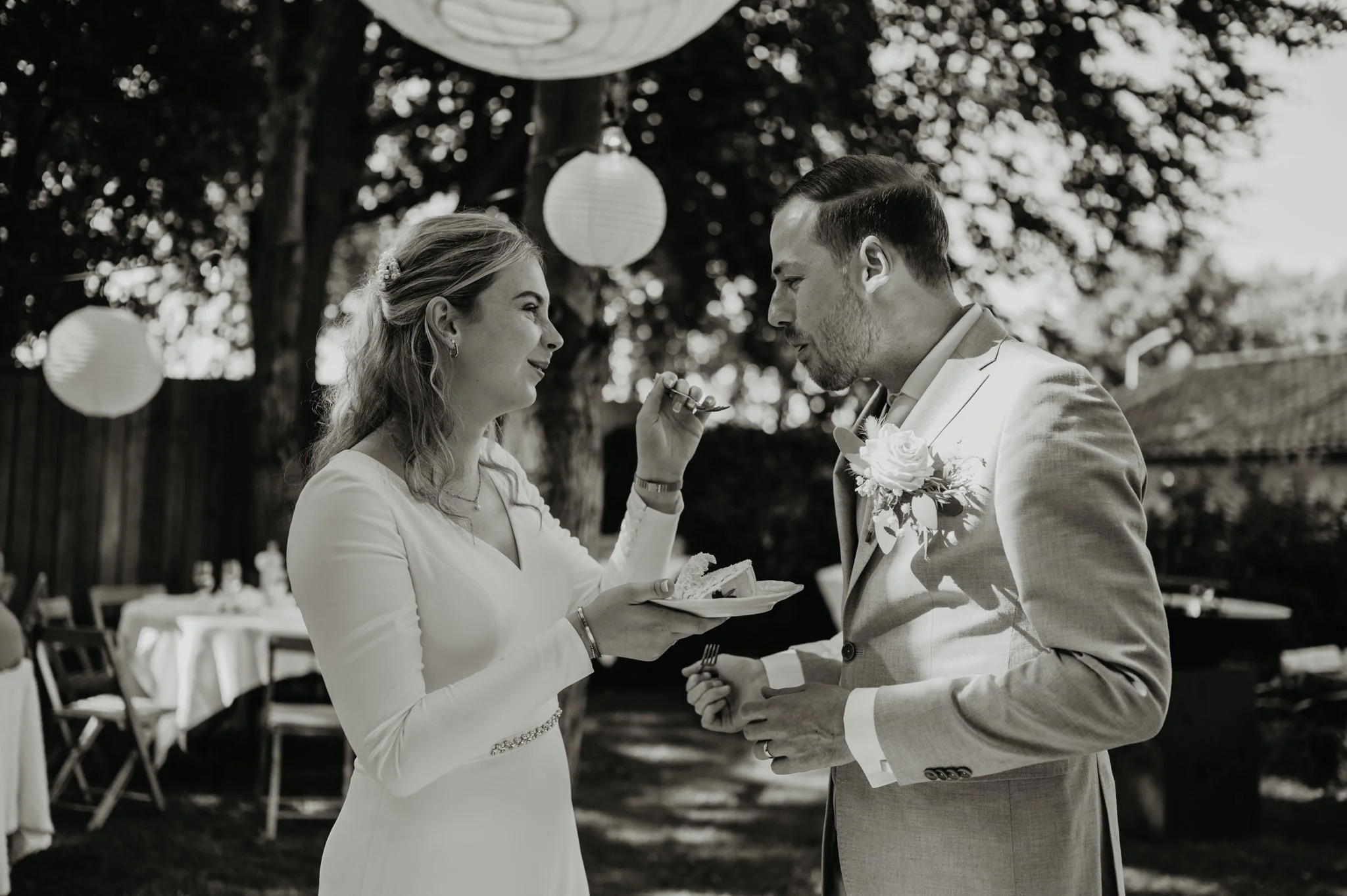 Een dag die begon met het klaarmaken en een intieme first look in eigen tuin, en eindigde met een knallend feest bij Galerie de Hoeve. Daartussen beleefden E&R een bruiloft vol liefde en bijzondere momenten. Ze gaven elkaar niet alleen het ja-woord voor de wet, maar kozen ook voor een kerkelijke ceremonie. En dat niet in een traditionele kerk, maar midden in de prachtige boomgaard van Galerie de Hoeve. Een unieke locatie die zorgde voor een romantische, ontspannen sfeer en een prachtig decor voor hun grote dag.
