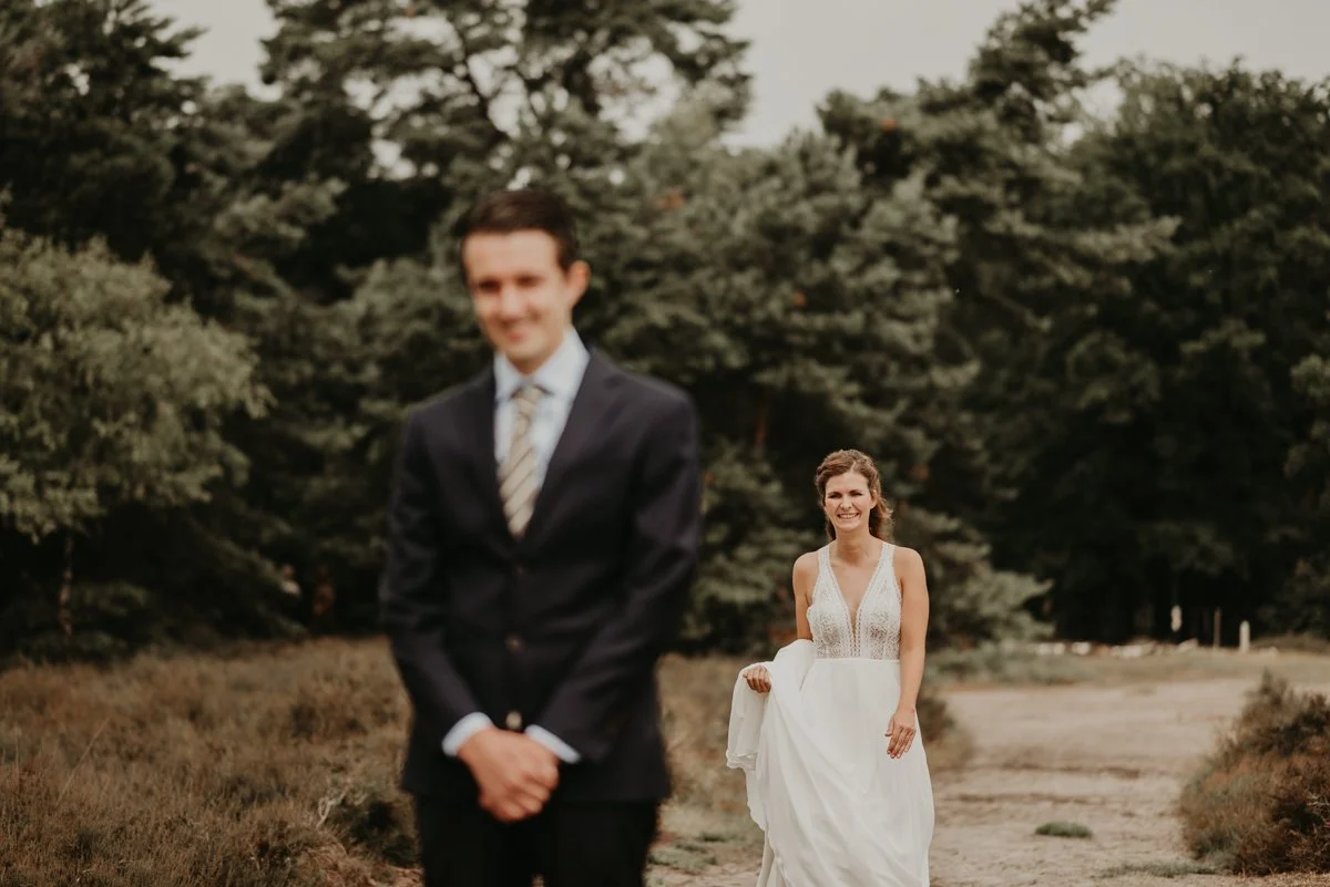 De first look vond plaats in de Staatsbossen, waarna we ook een leuke fotoshoot deden. Vervolgens gingen we naar trouwlocatie onder de Panne, gelegen in Brabant.