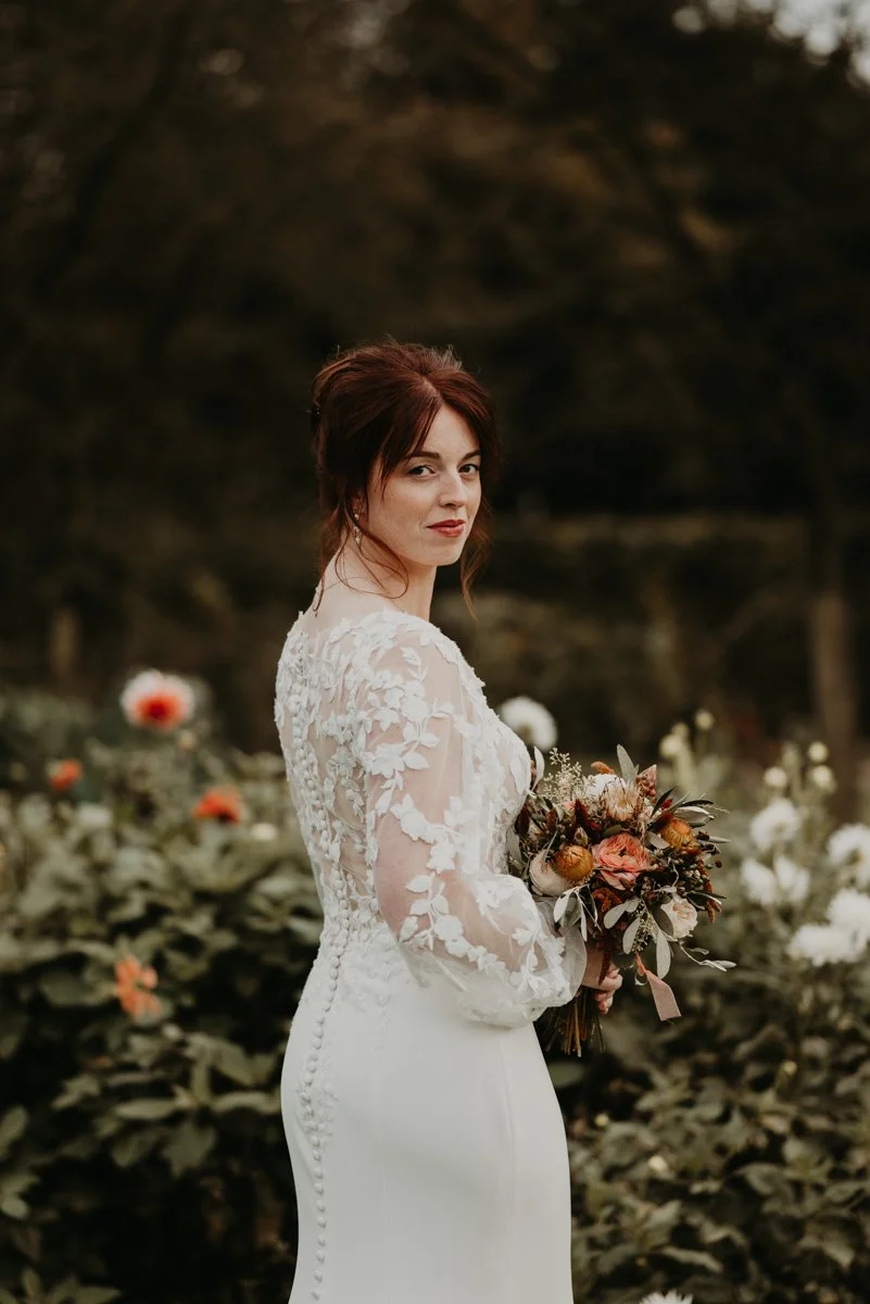Deze bruiloft vond plaats in de herfst, waardoor de tuin van La Tertulia gevuld was met warme herfstkleuren. De combinatie van het spontane stel, de prachtige tuin en de mooie herfstsfeer maakte deze trouwdag extra bijzonder.