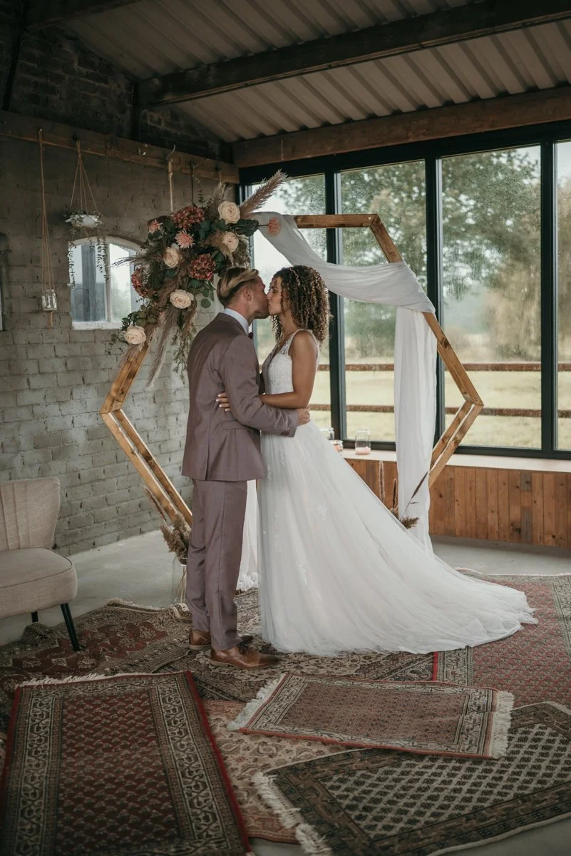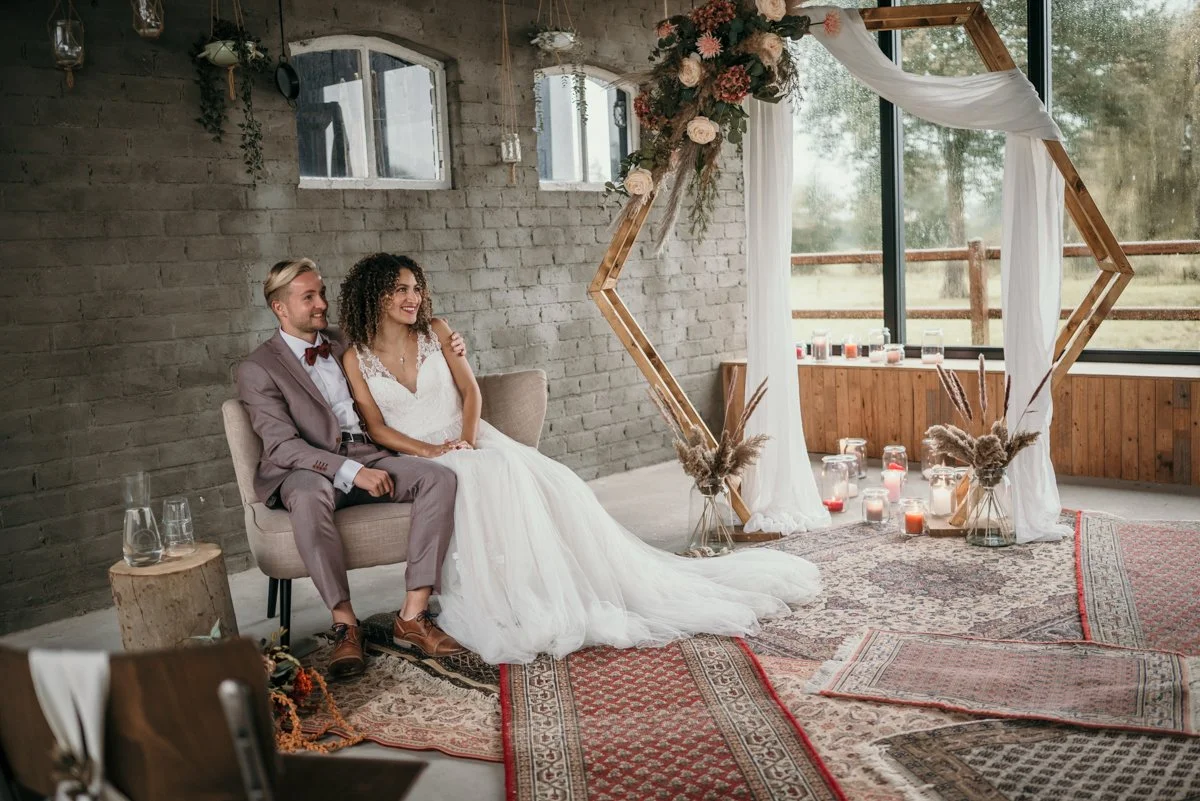 Samen met een collega trouwfotograaf ging ik om de tafel om ons idee uit te werken. We wilden het plaatje neerzetten dat we al een tijdje in ons hoofd hadden: een bohemian elopement wedding met warme bruintinten, een romantische sfeer en een intieme setting.