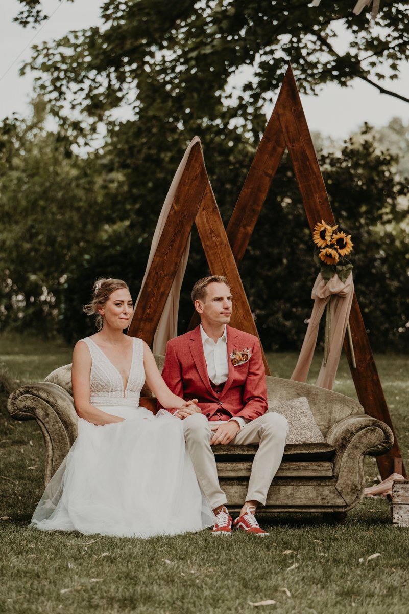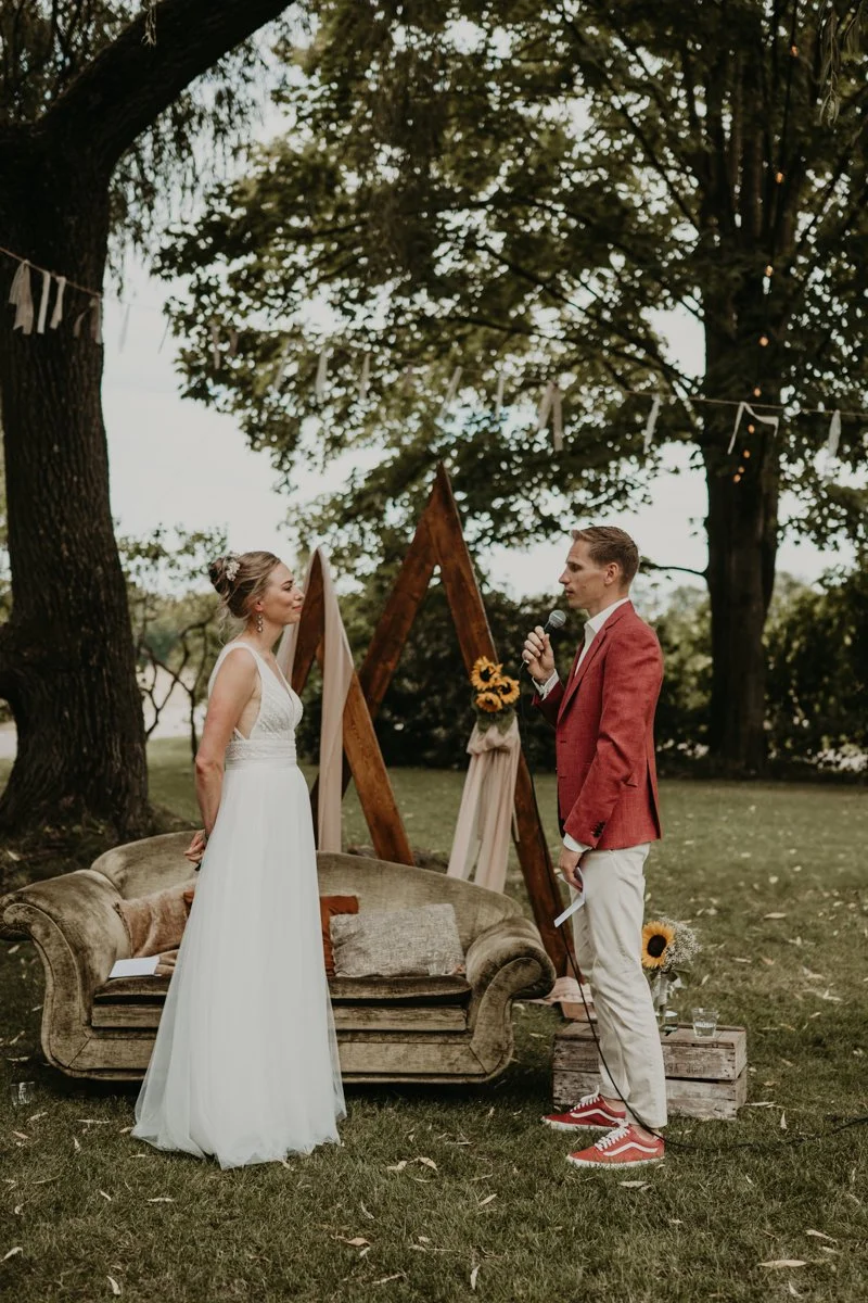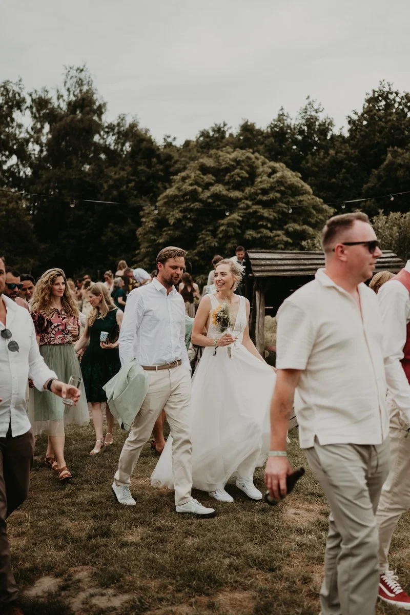 M&H trouwden bij Hoeve de Knol. Maar niet op de standaard manier. Geen traditionele bruiloft van één dag, maar een compleet eigen festivalweekend vol liefde, plezier en verrassingen.