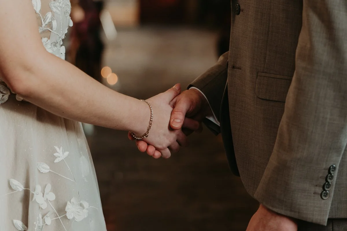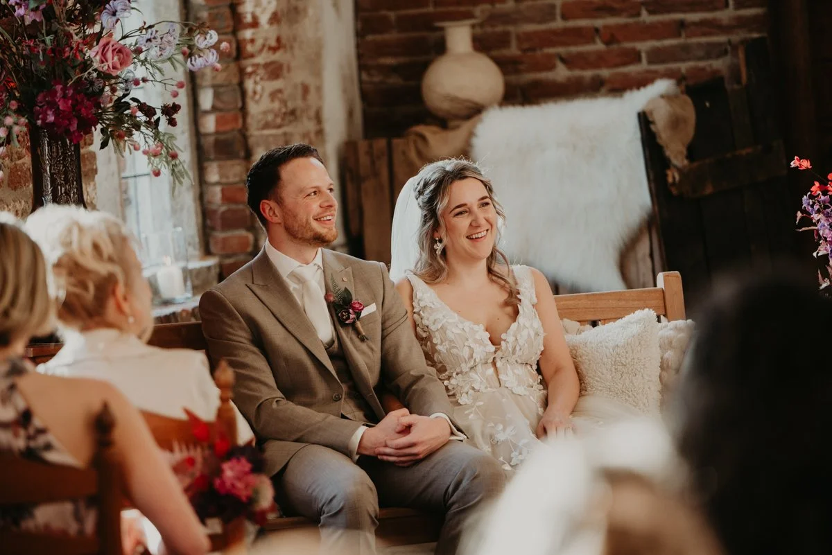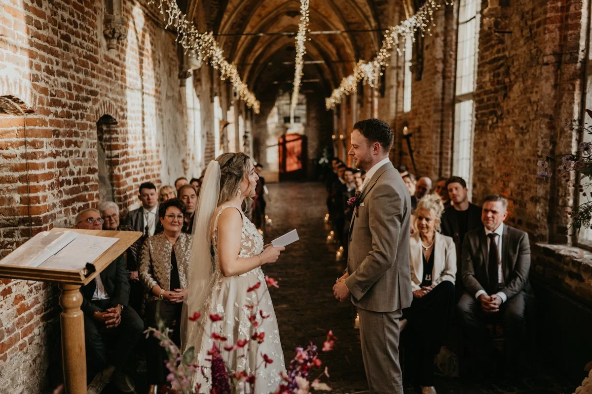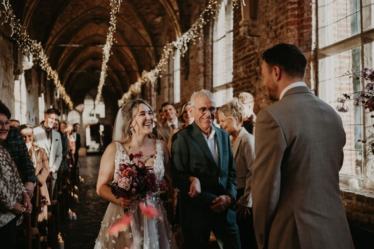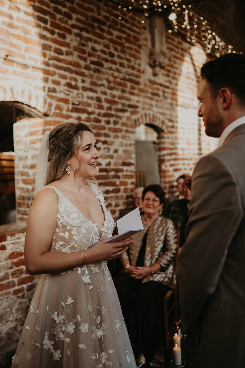De bruidegom en vervolgens de bruid werden beiden weggegeven door hun eigen vaders. De ceremonie werd gesproken door de broer van de bruid, wat het extra persoonlijk maakte.